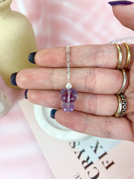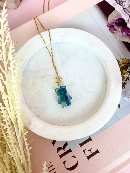 s925 Blue Fluorite Bear Gold Plated Necklace