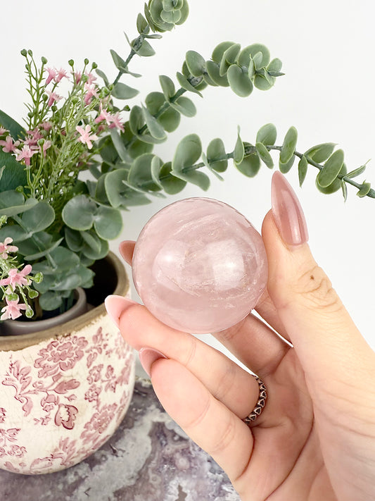 Rose Quartz Sphere with Glass Stand