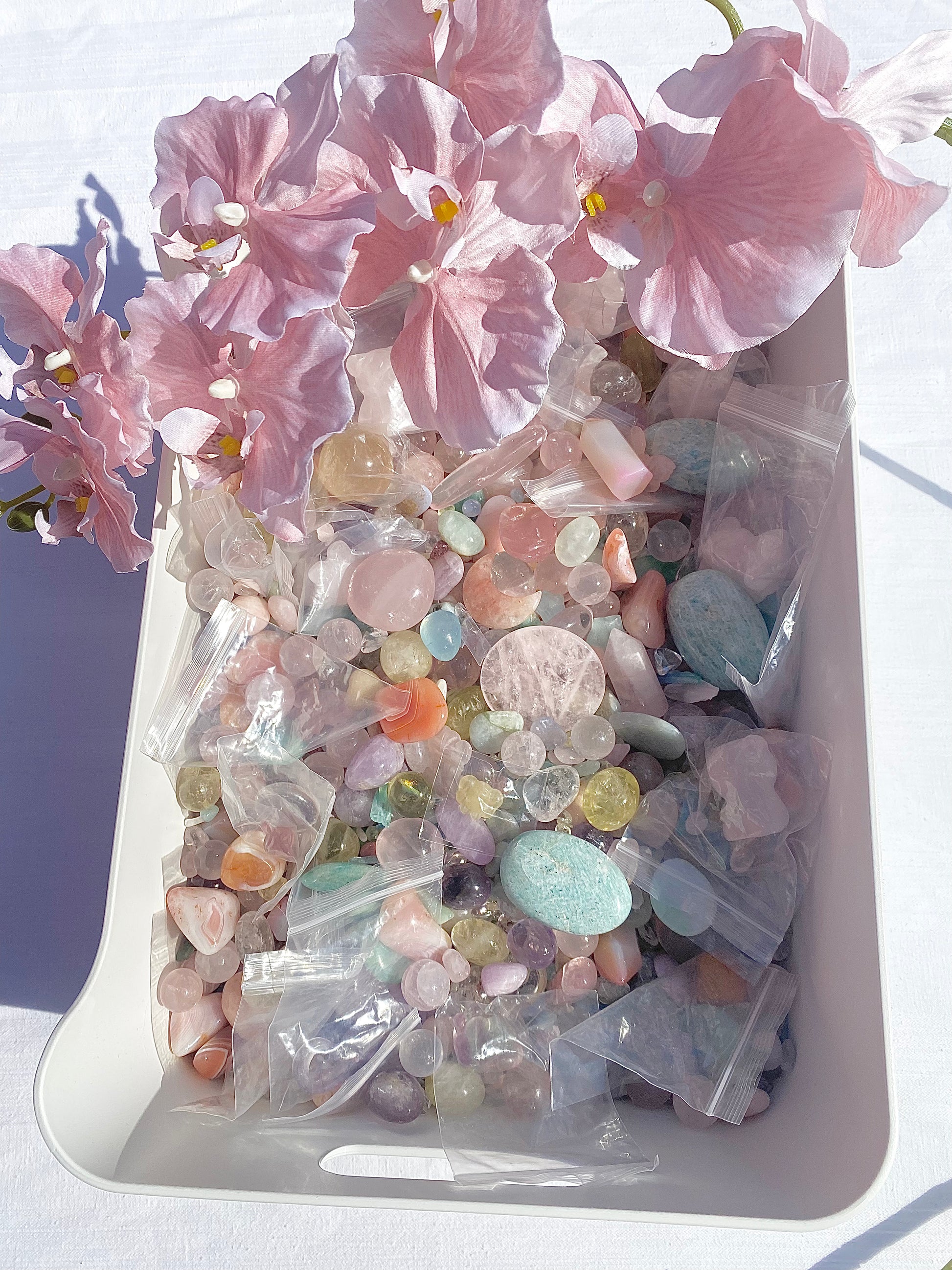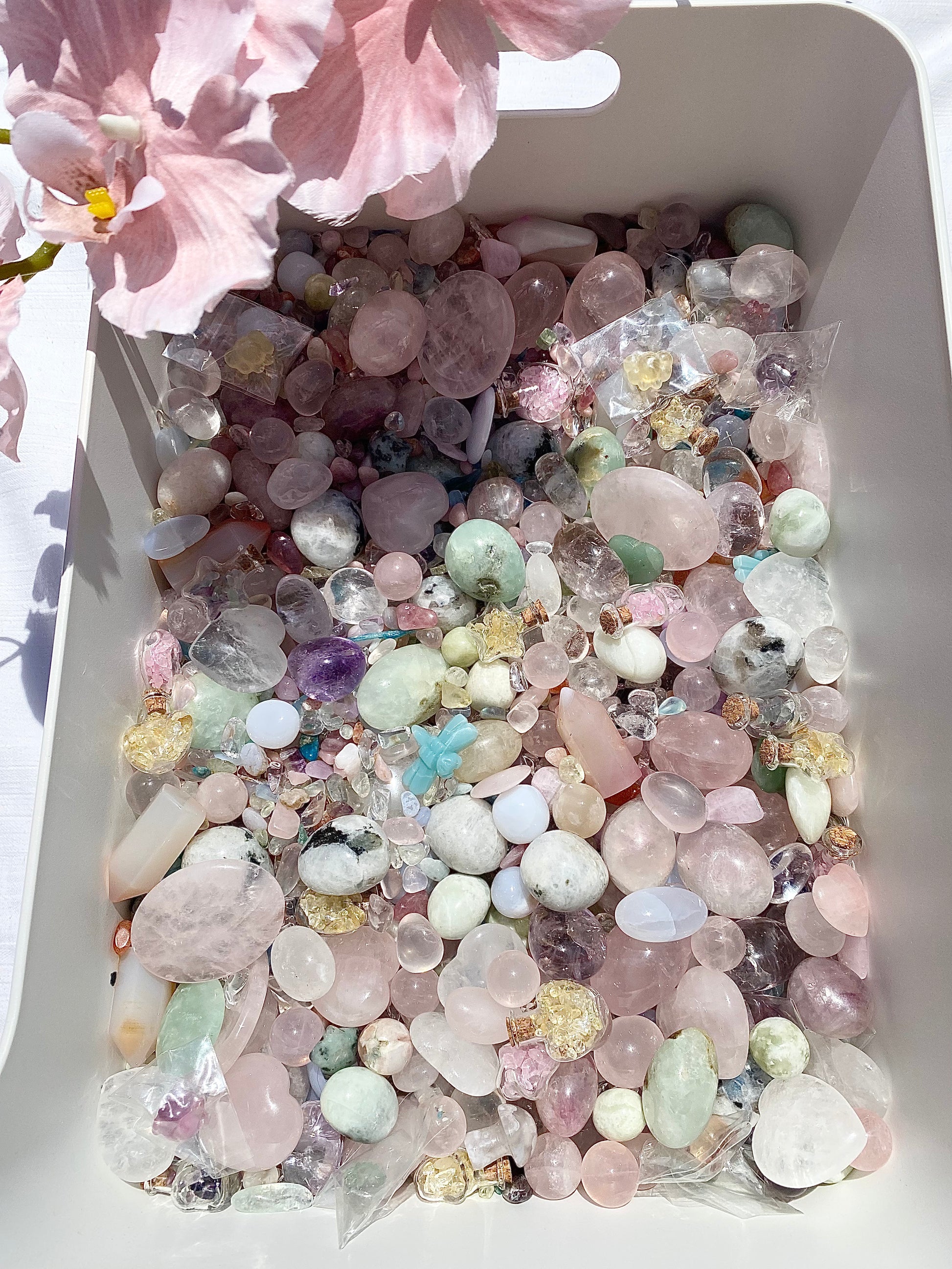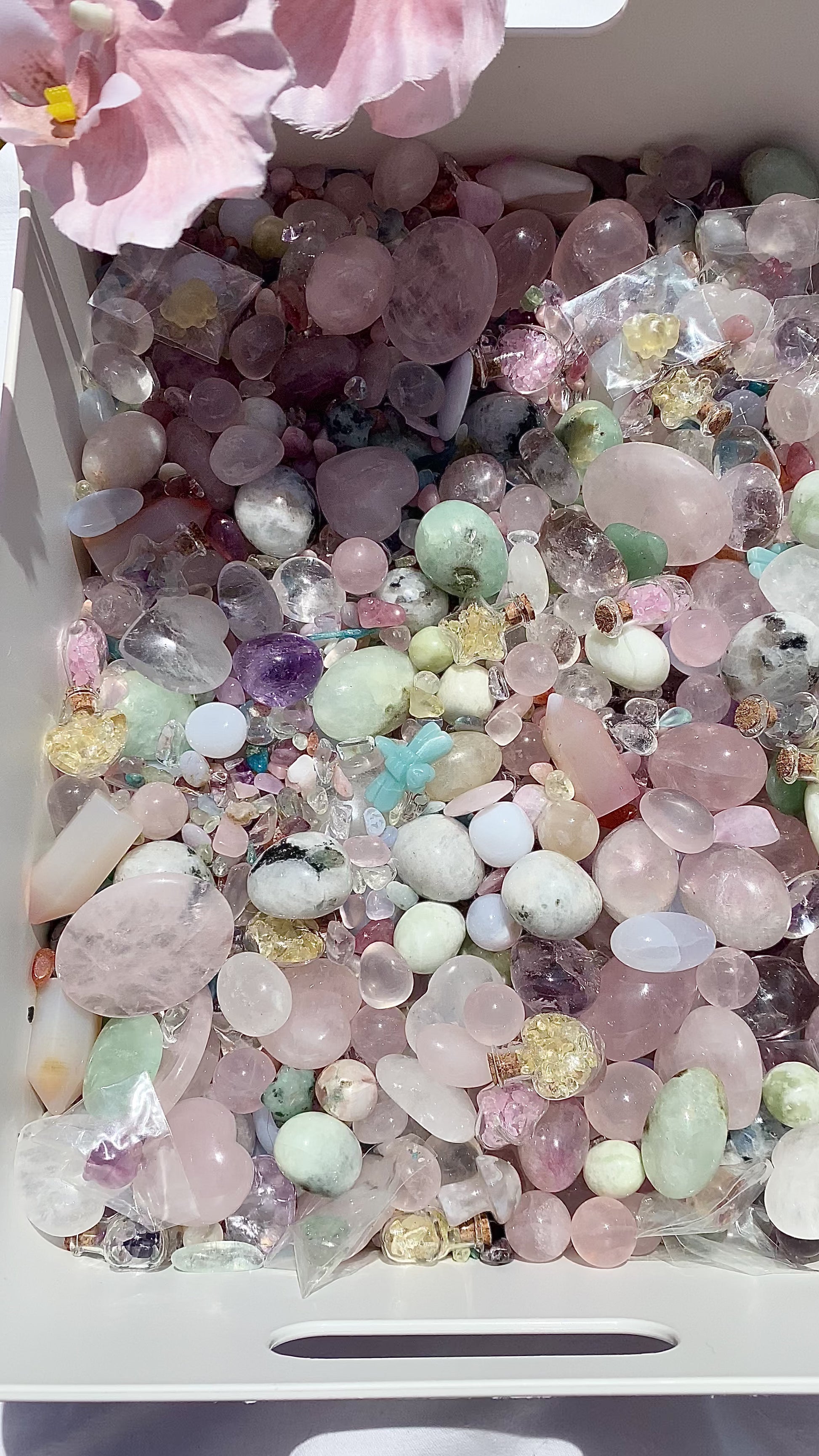 this crystal confetti mix contains all things PASTEL. a very cutsie mix. test your luck and see what pastel dreamy treasures you discover!