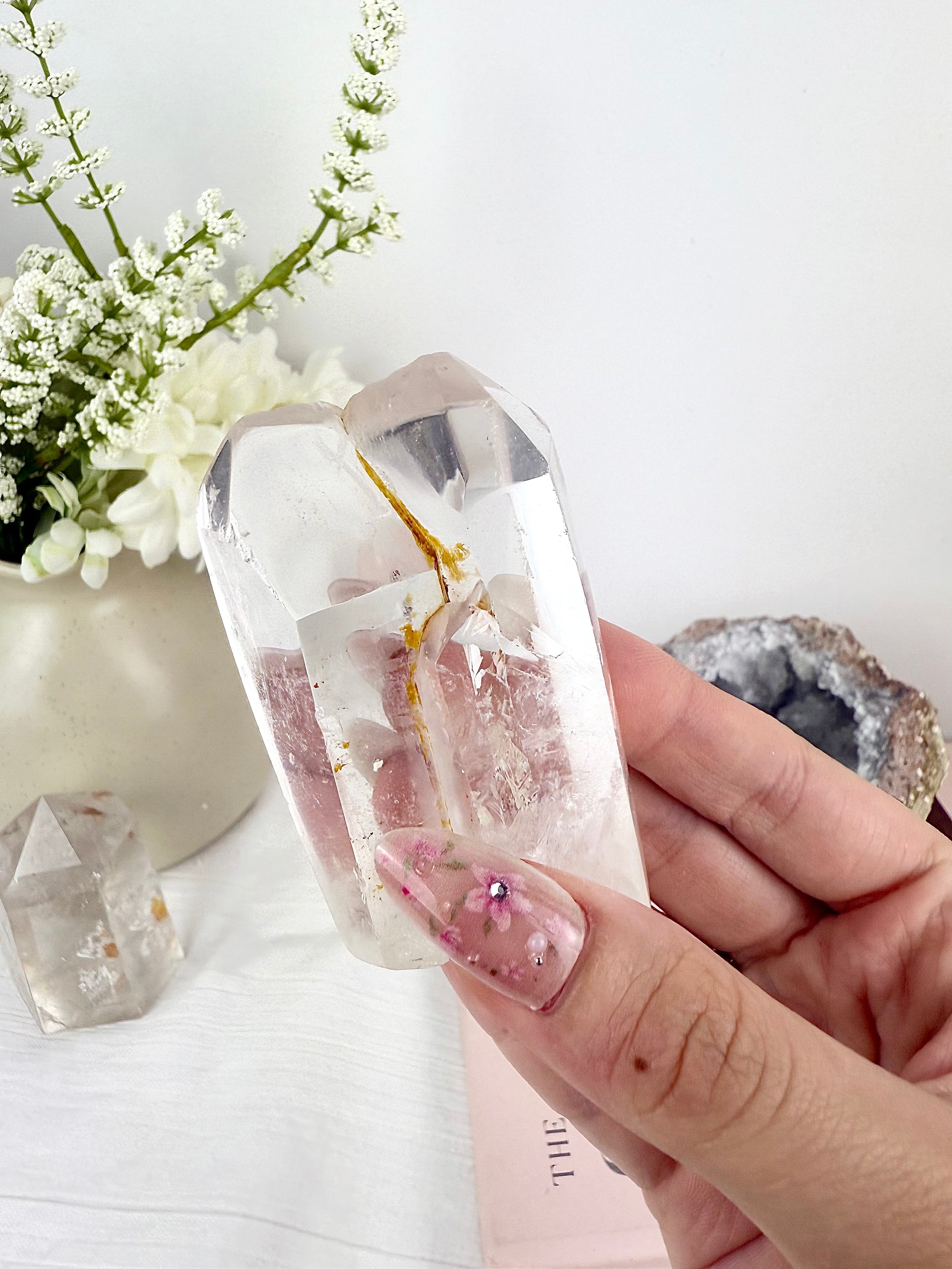 Clear Quartz High Quality Double Towers with Golden Healer Inclusion