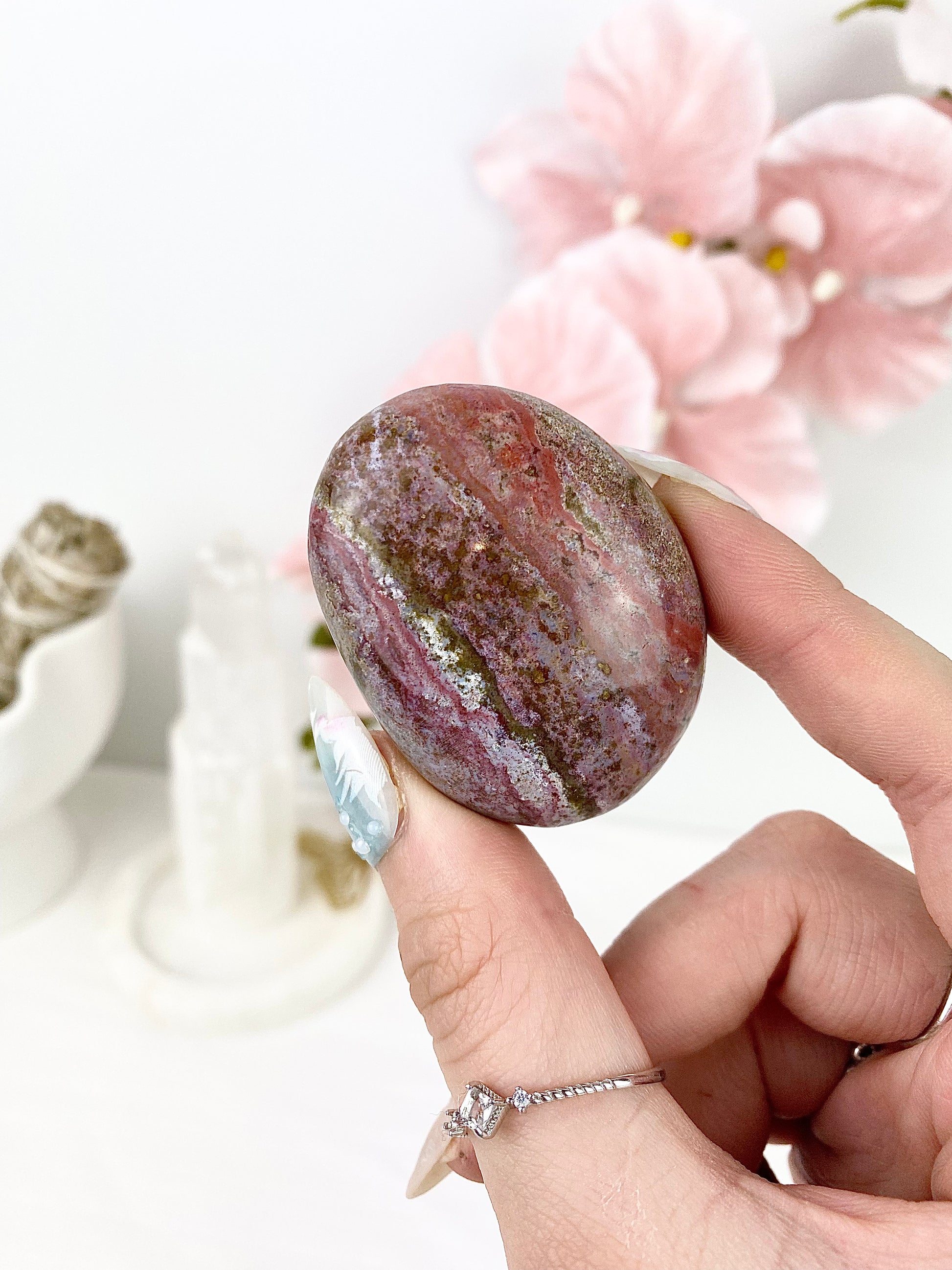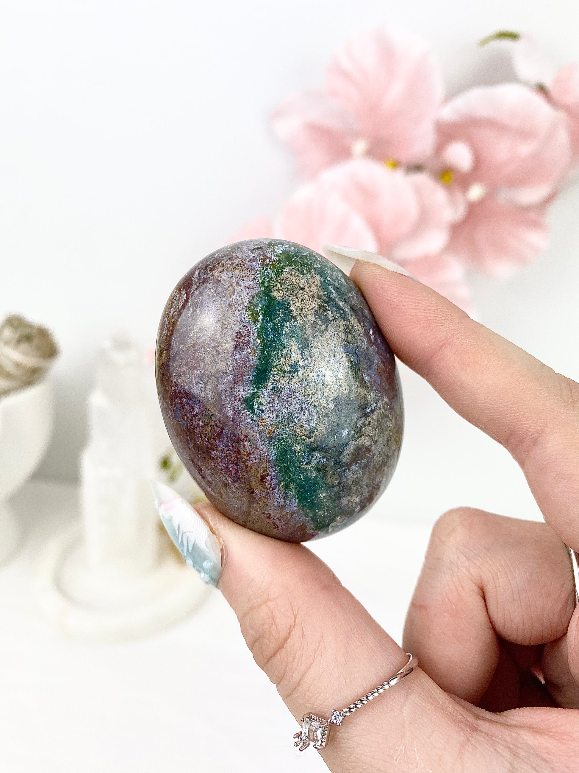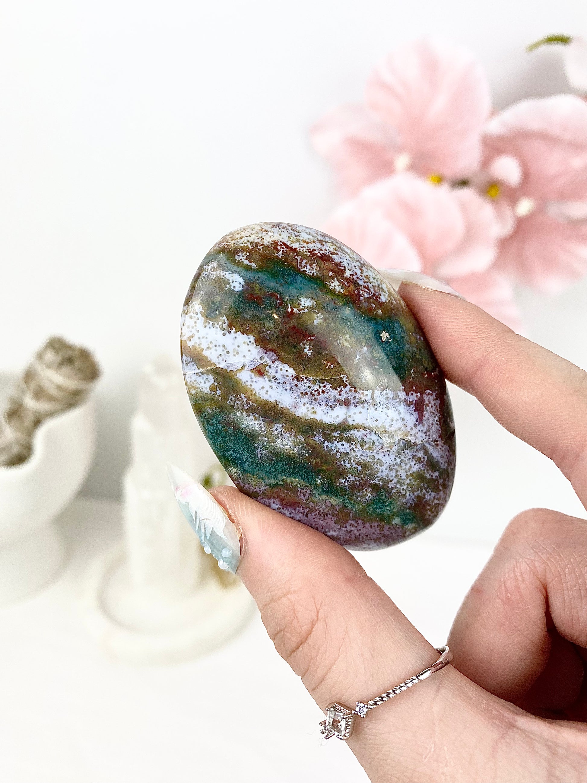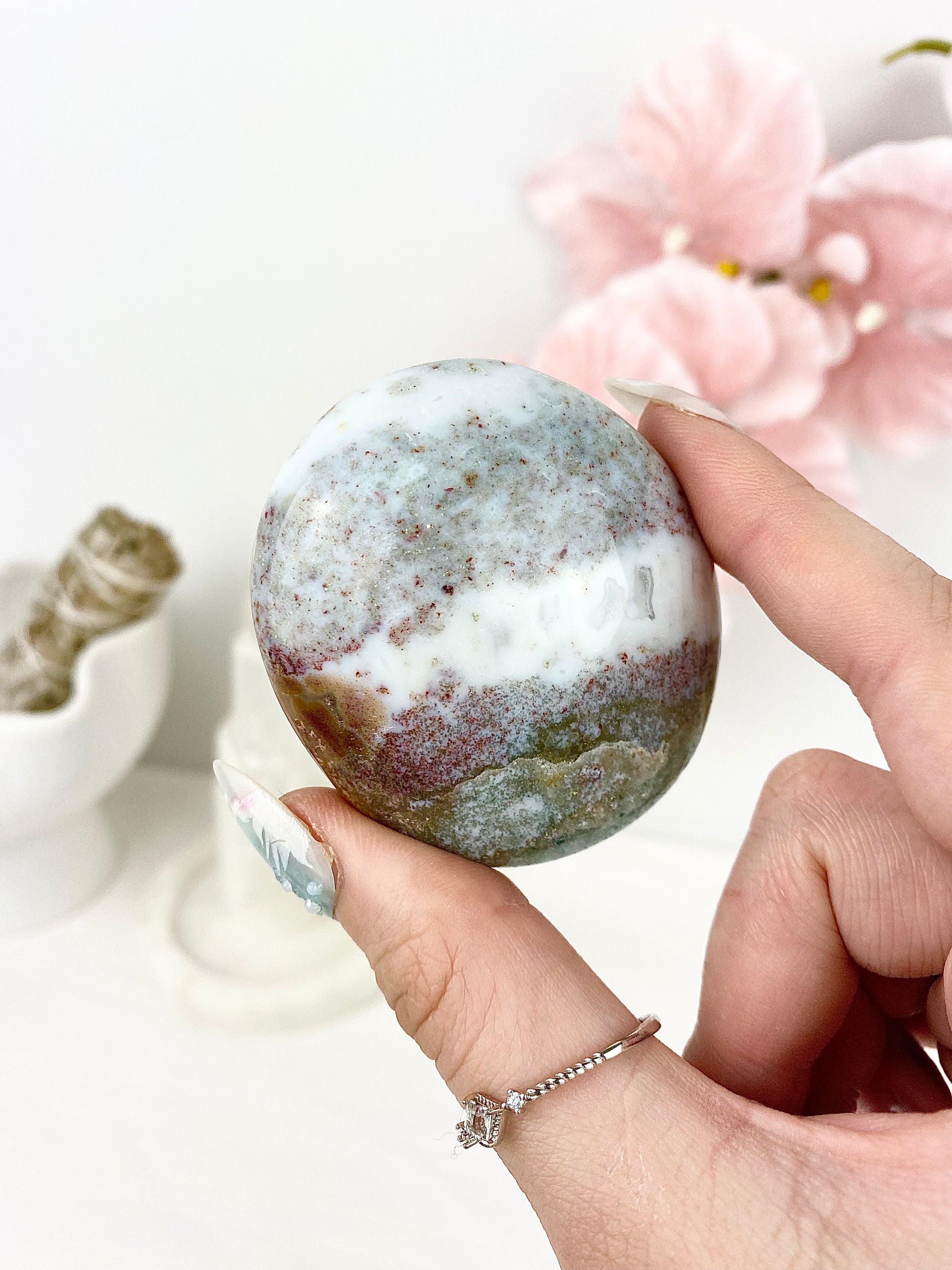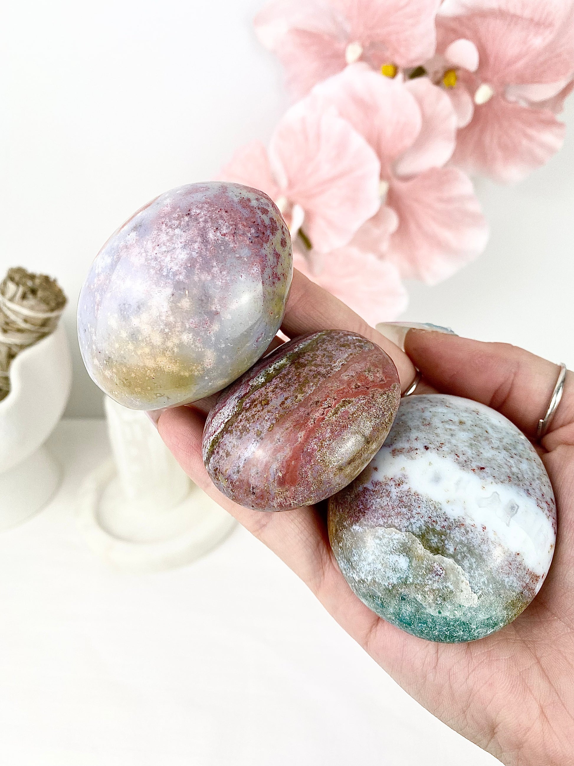 ✿ Pastel Ocean Jasper Palm Stones ✿