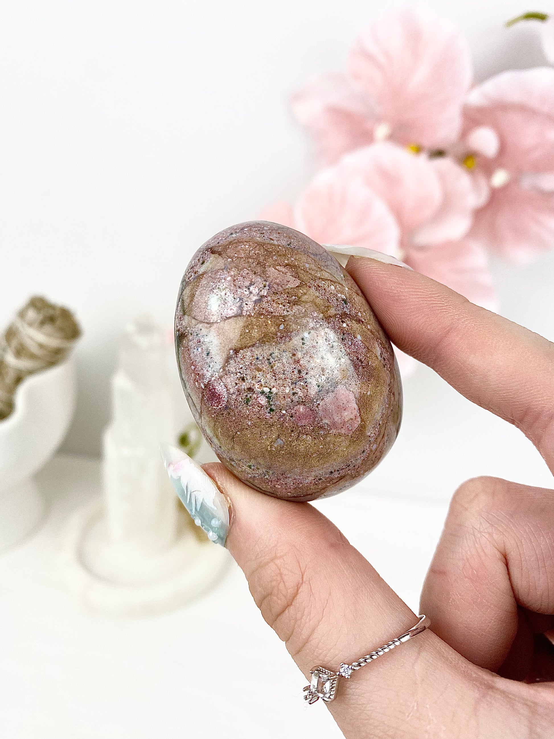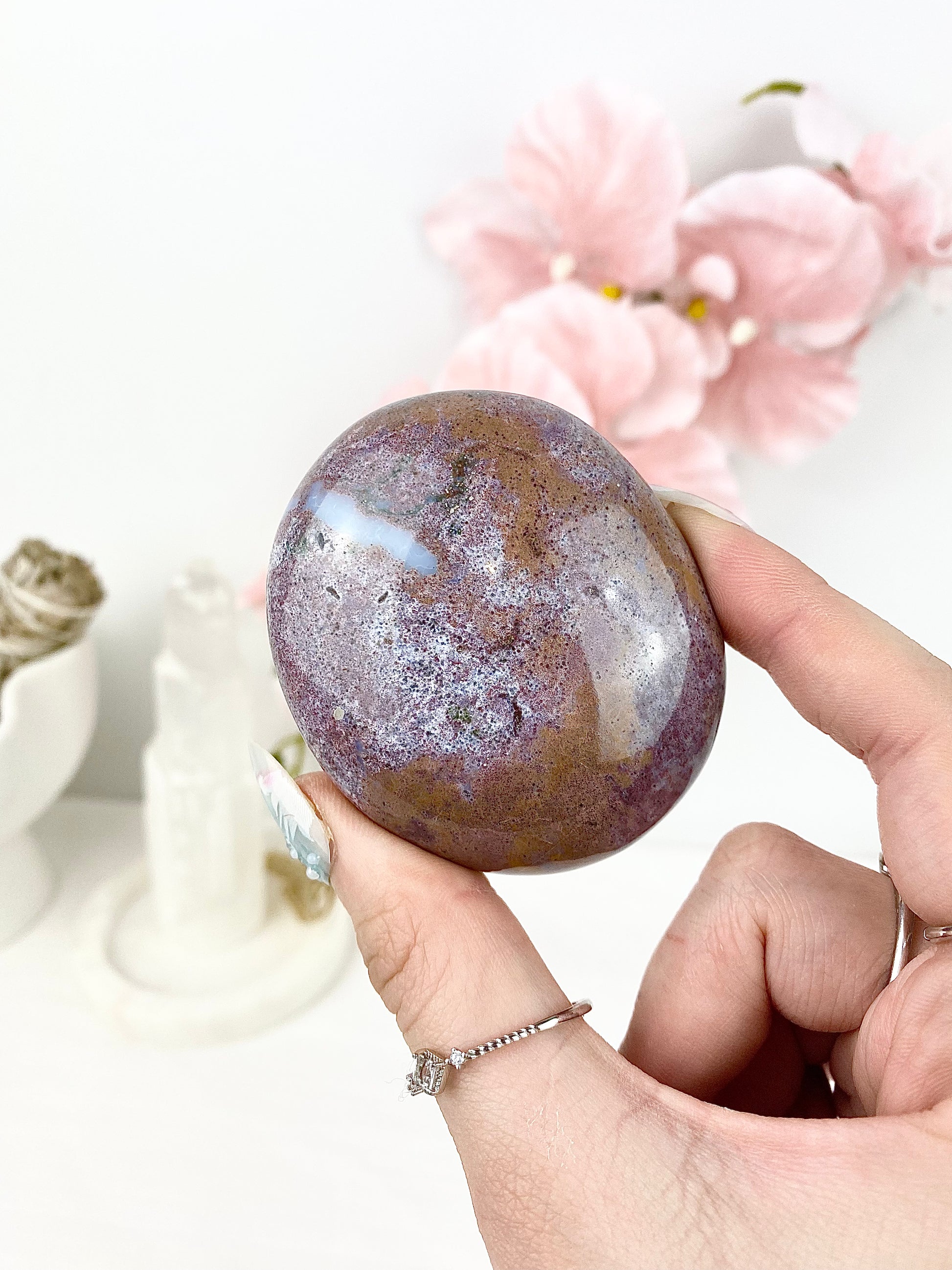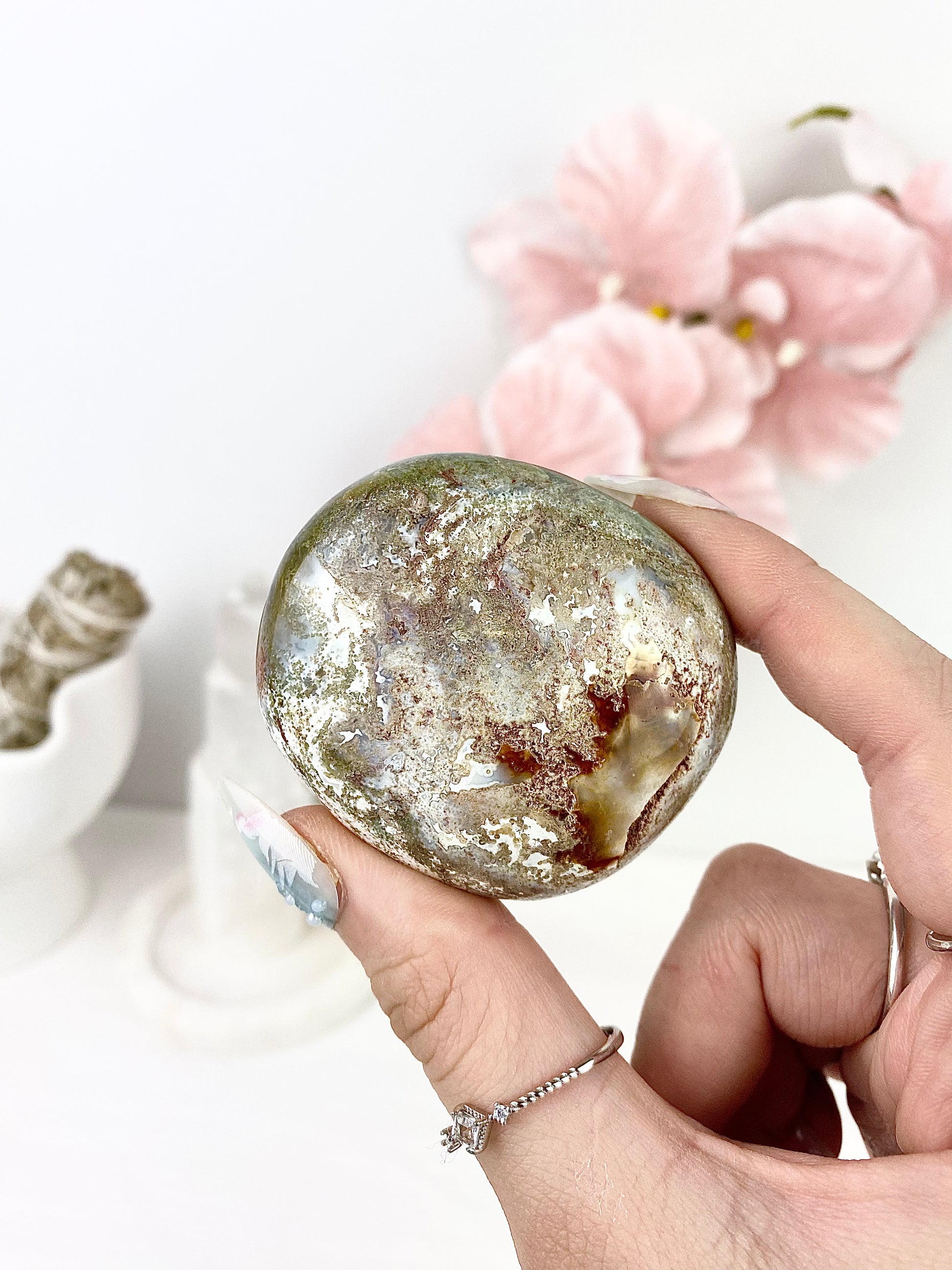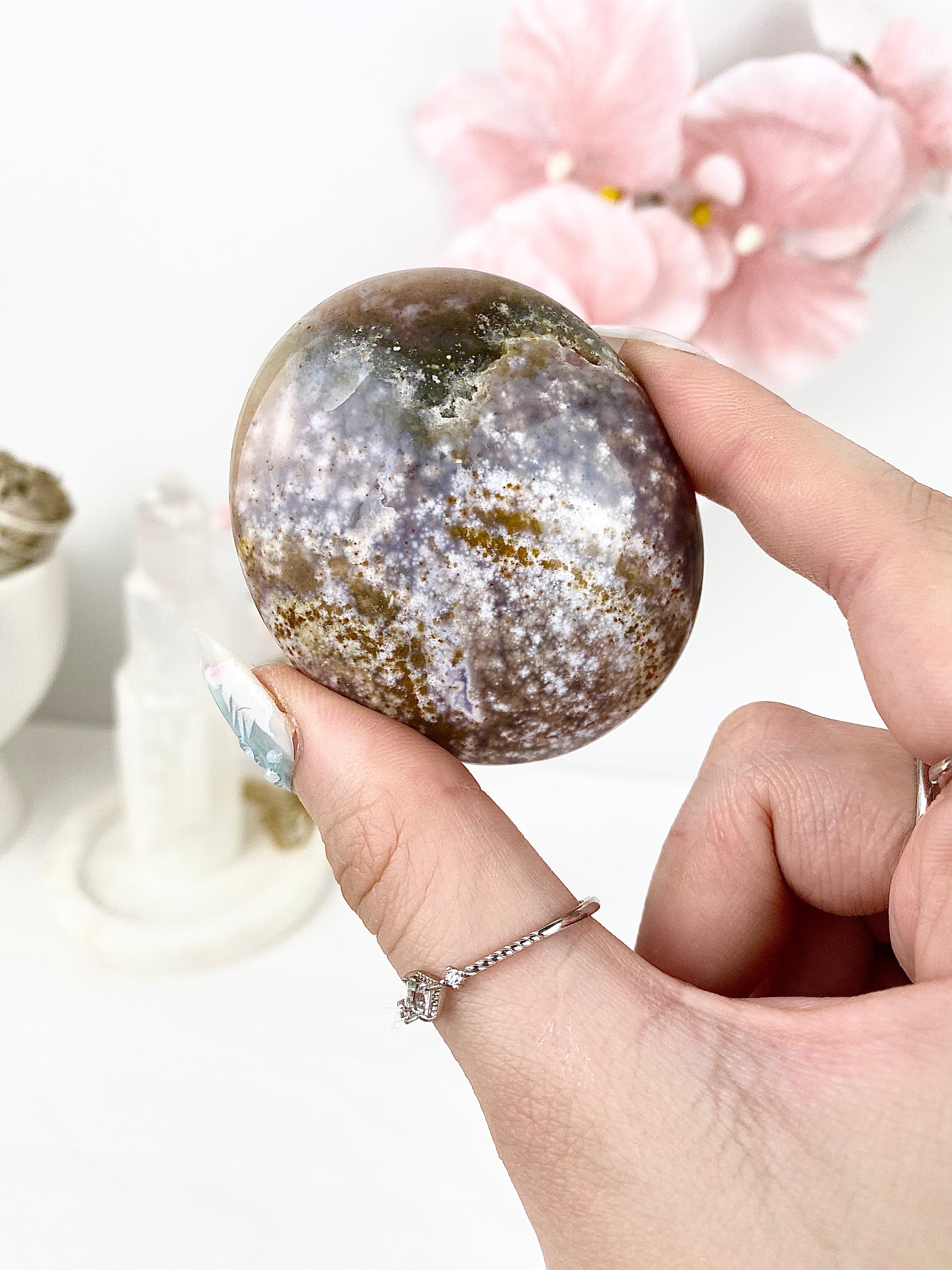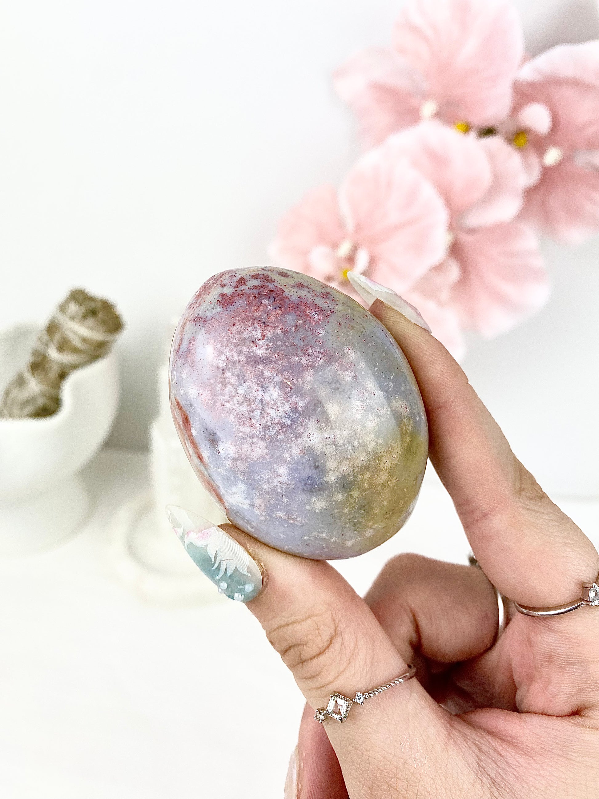 ✿ Pastel Ocean Jasper Palm Stones ✿