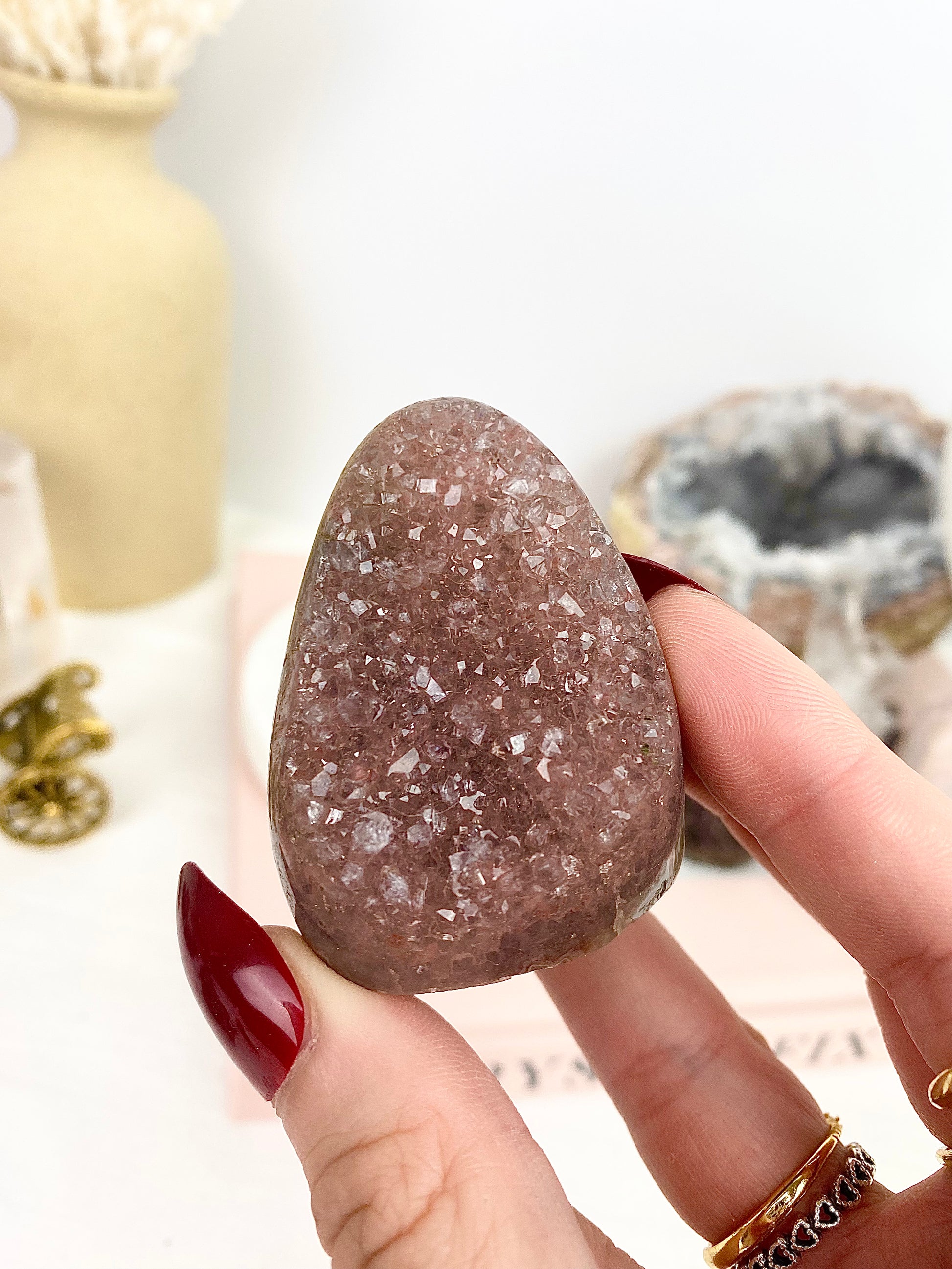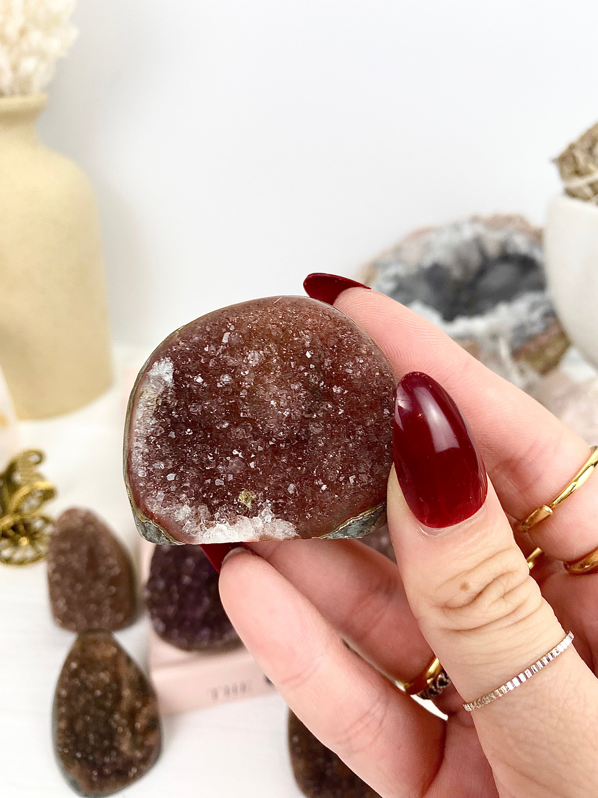 Sparkly Pink & Red Druzy Amethyst Geodes