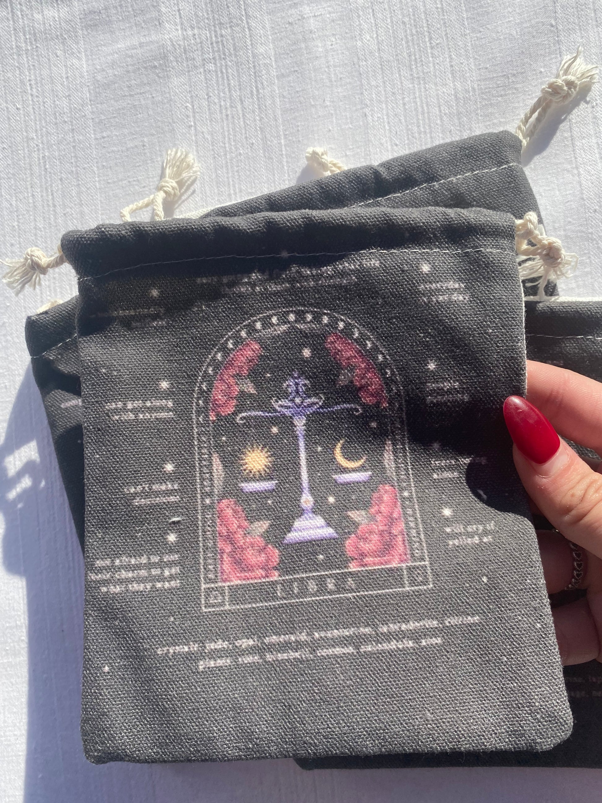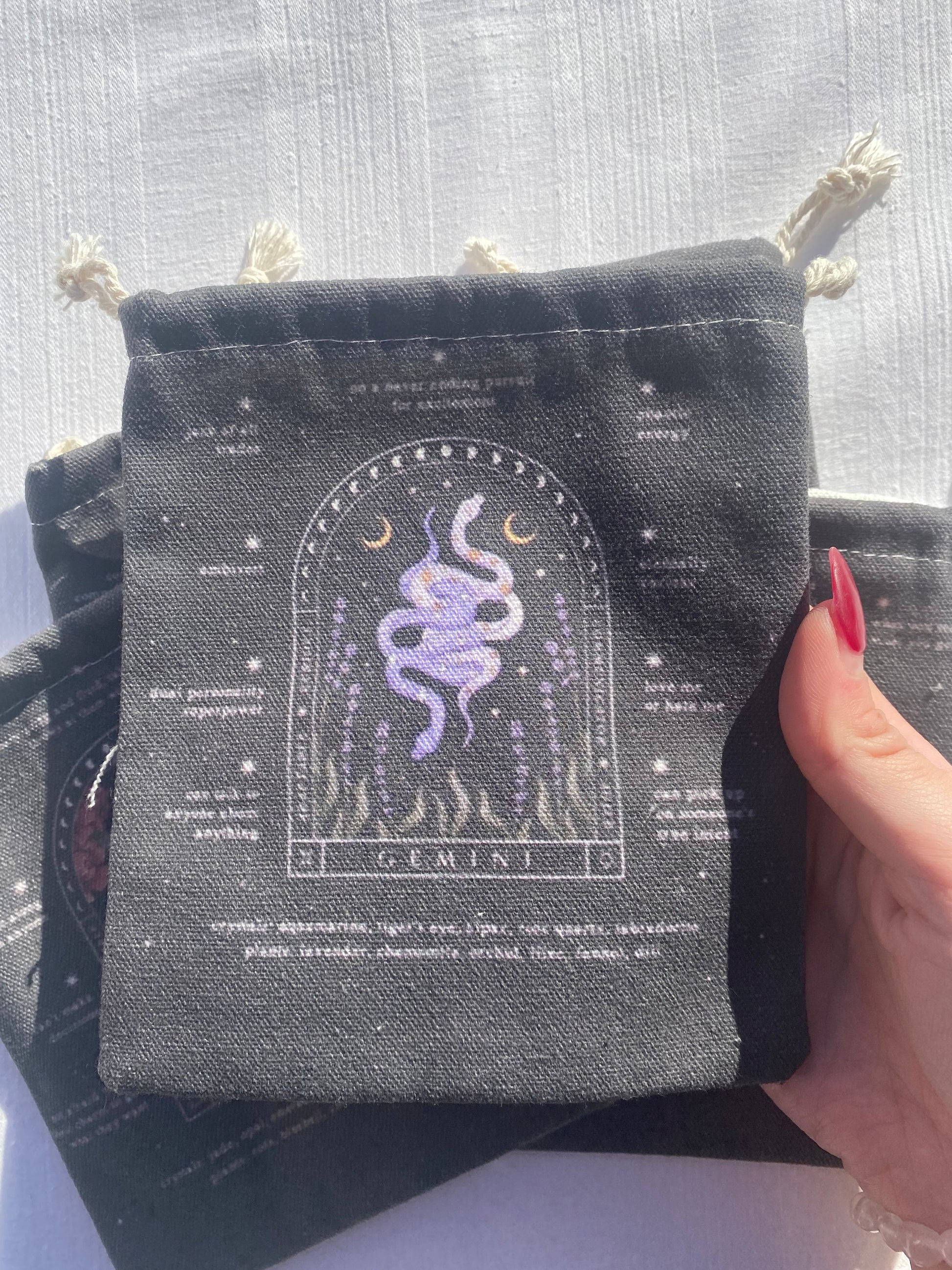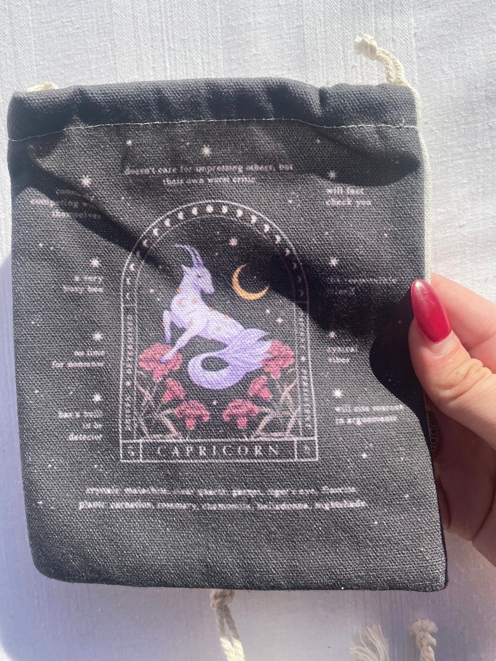 Sarah I wanted a cute little bag to carry witchy things around with me and found the perfect one! I love the Sagittarius print & the bag is a nice quality that seems sturdy (: